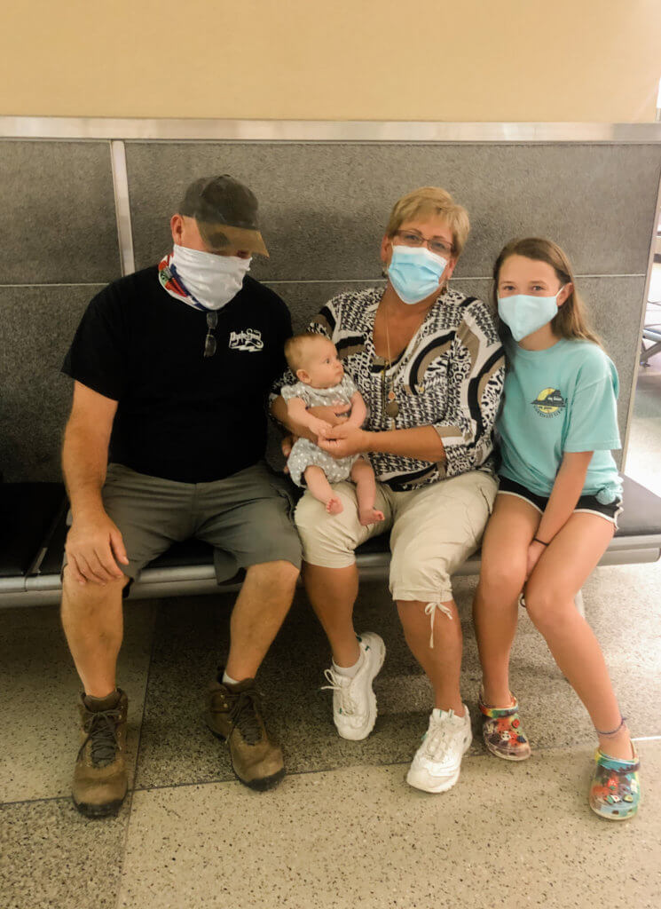 Finally, after leaving security, we made our way across the airport to the Delta Sky Lounge. There was plenty of time before our next flight to Raleigh-Durham. The flight was delayed and I had extra time to grab a snack, relax, play with Lillie, and nurse in the lounge. We finally boarded an hour or so later and then sat on the plane for 1.5 hours waiting on our pilot. Again, it was perfect timing because it was around 11 pm and dark on the plane — all perfect conditions for her to sleep well. We landed after midnight and had the BEST reunion with my mom, dad, and niece. Although it was a 25-hour travel day from my home in Germany to my parent’s home in North Carolina, I was impressed with how well our flight and traveling went.