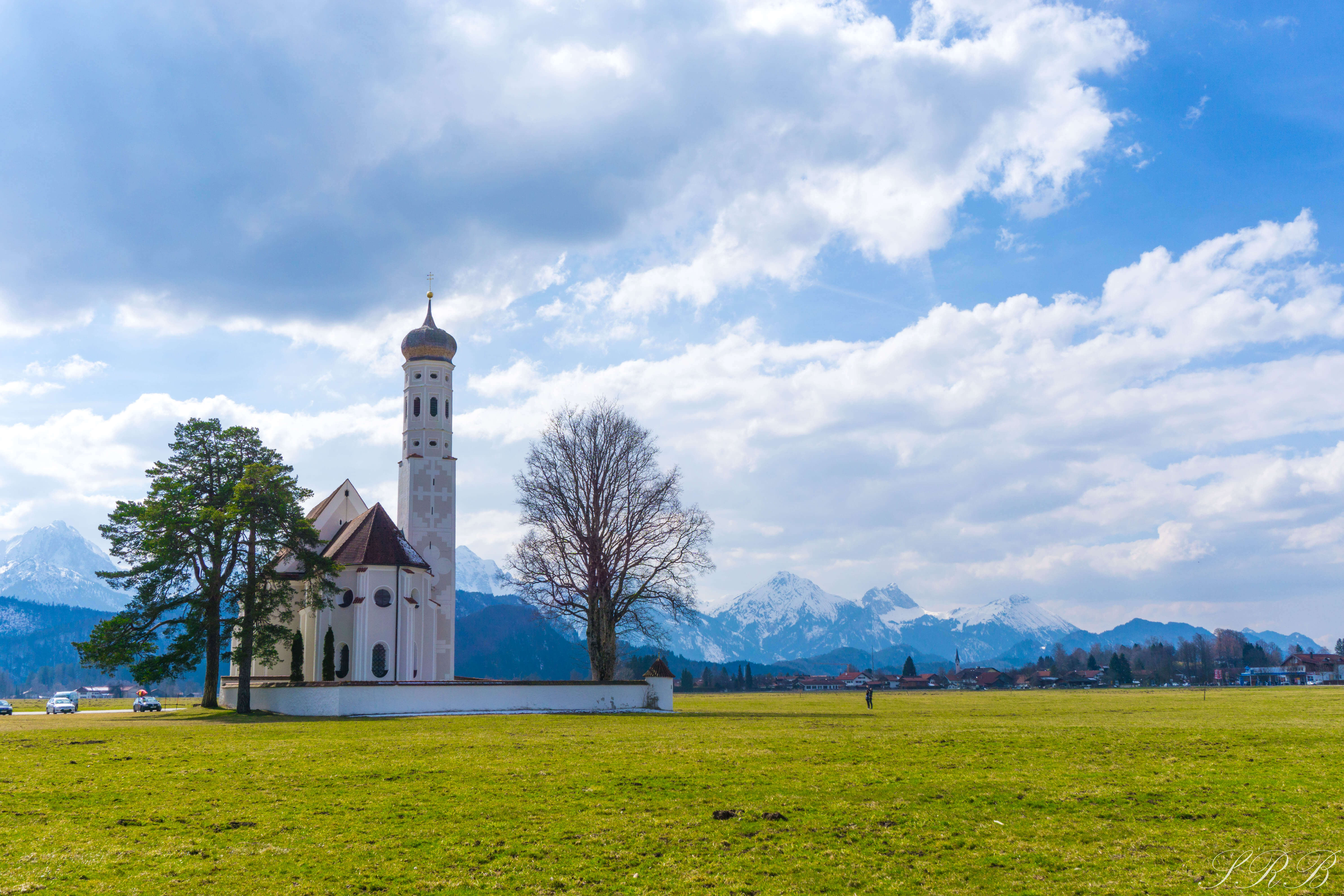 While on our trip to Füssen, we explored as much as we could apart from castles and suspension bridges. St. Coloman Catholic Church is a must-visit. It’s a beautiful church in the middle of a field, with nothing but the Alps and Bavarian countryside in the background. This is a perfect place to take photos and you can visit inside of the church as well.