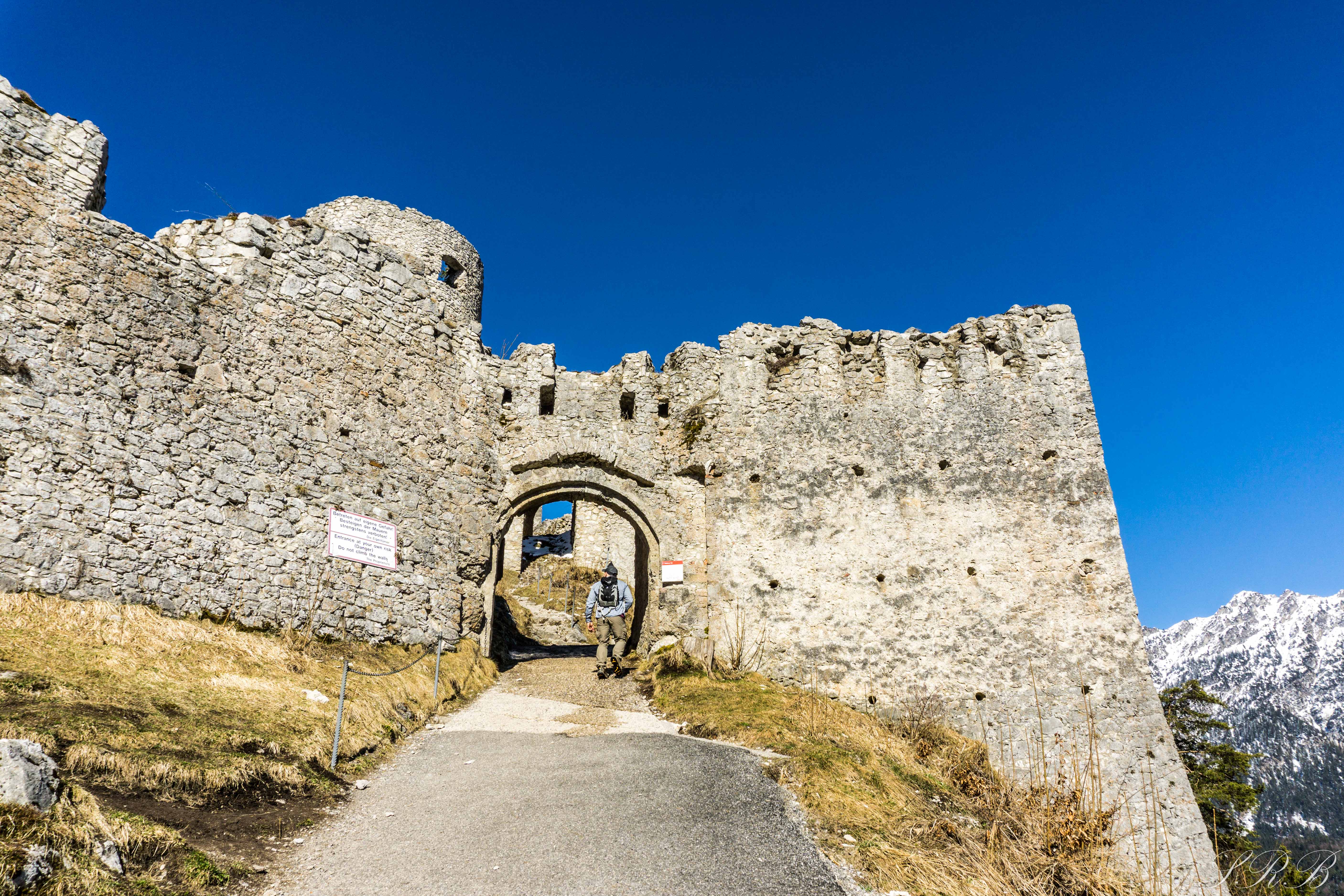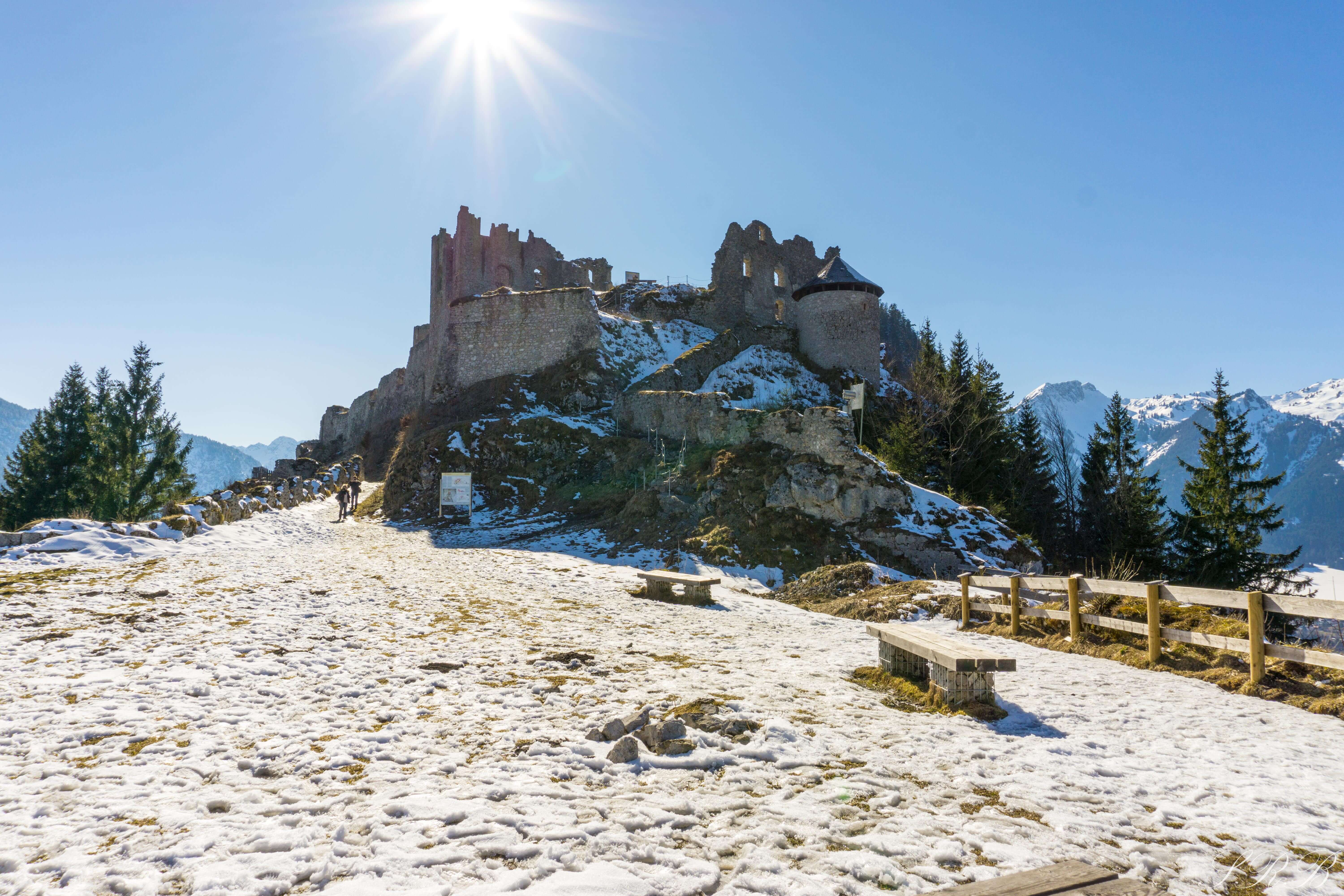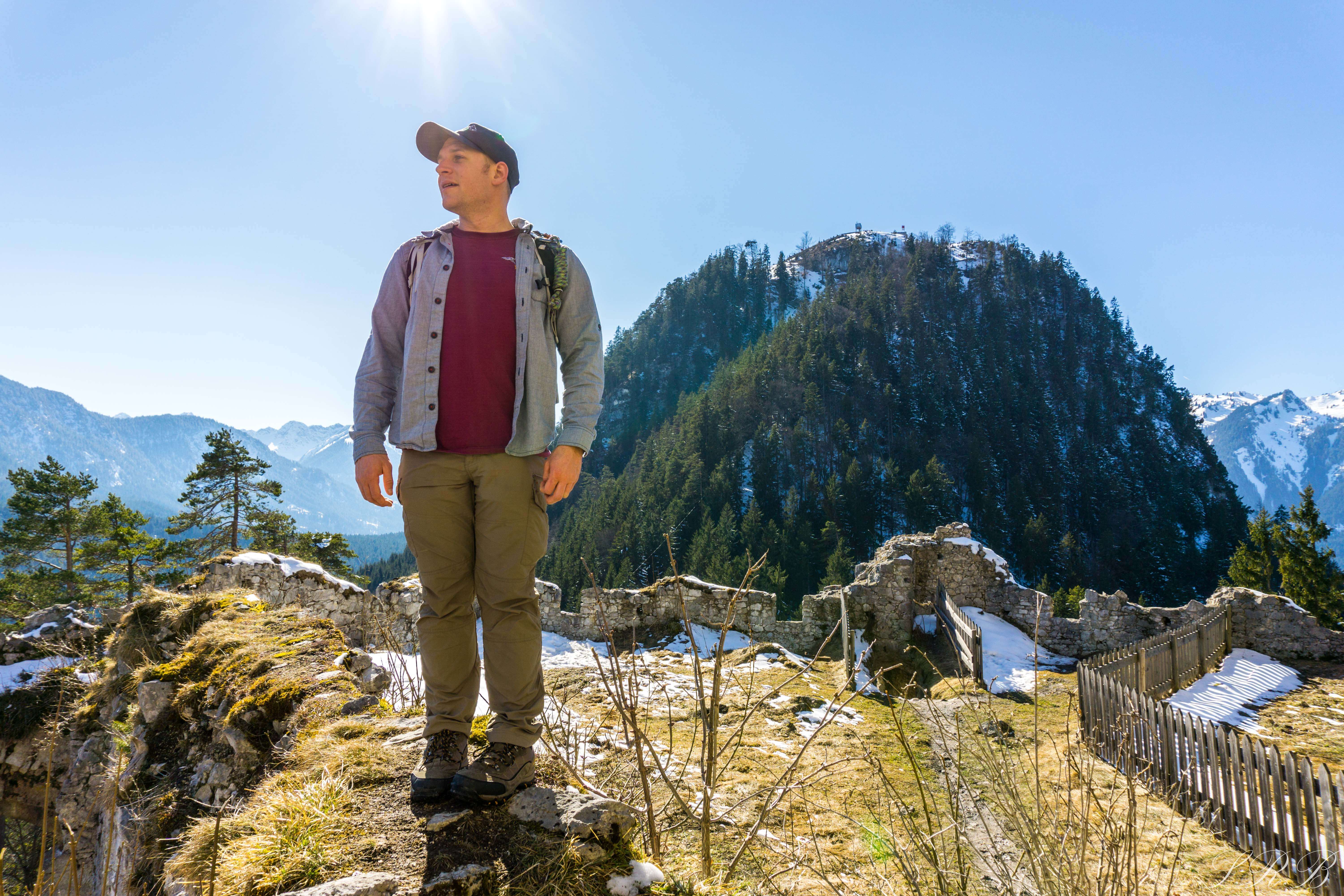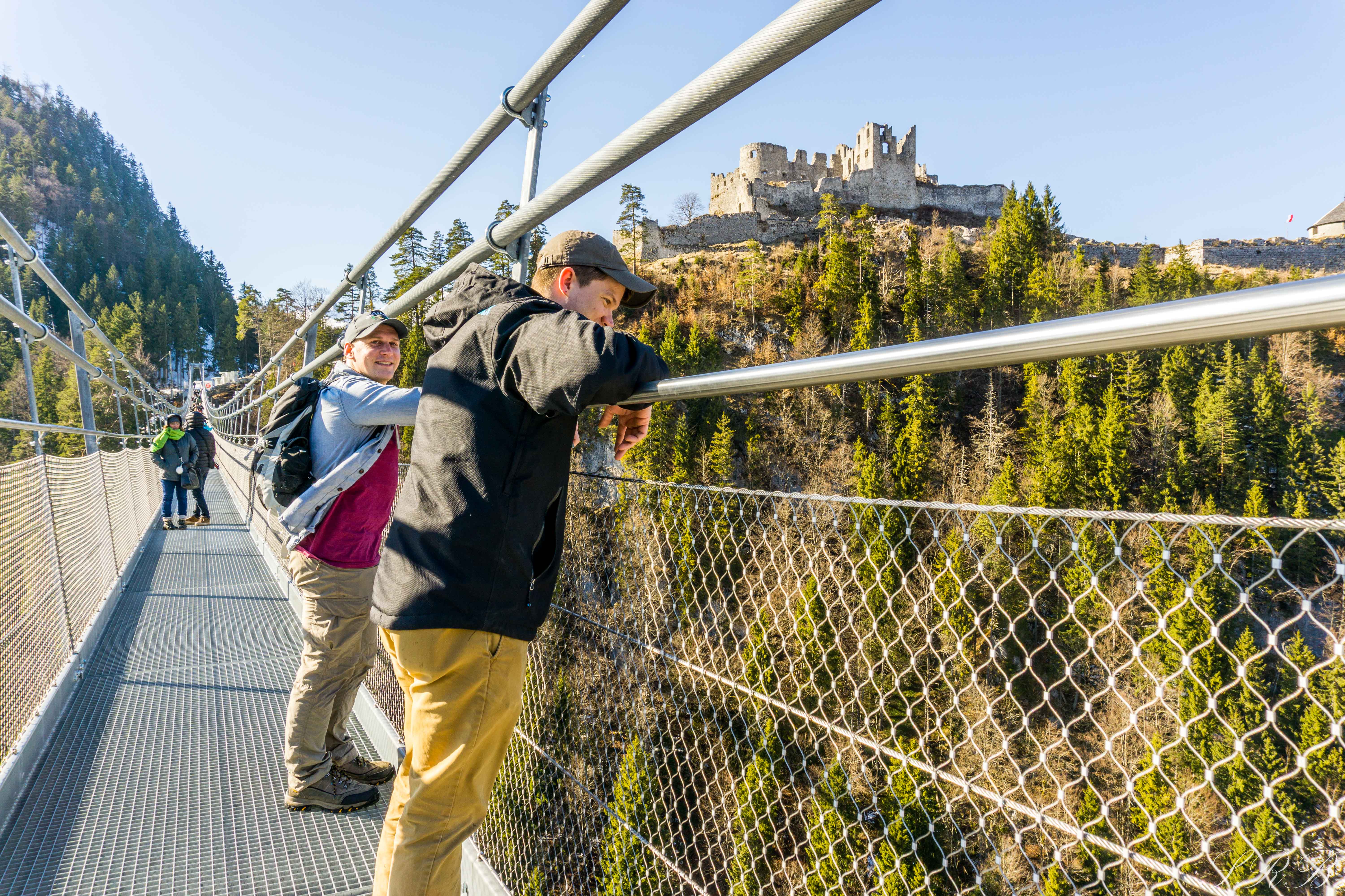 A short, but steep hike up the side of the hill led us to Ehrenberg Castle, which was built in 1296. The further into the castle you traveled, the more you realized how much there was to explore. Even though the base of the castle was constructed in the 13th century, the upper levels of it weren’t finished until the 18th century. I could wander amongst the castle walls forever, climbing around and admiring the different viewpoints. Some spots required climbing a wall, or a ladder, which the kids that were there loved doing. From inside of Ehrenberg Castle, there are perfect views of the snow-capped Bavarian Alps with the suspension bridge hanging below.